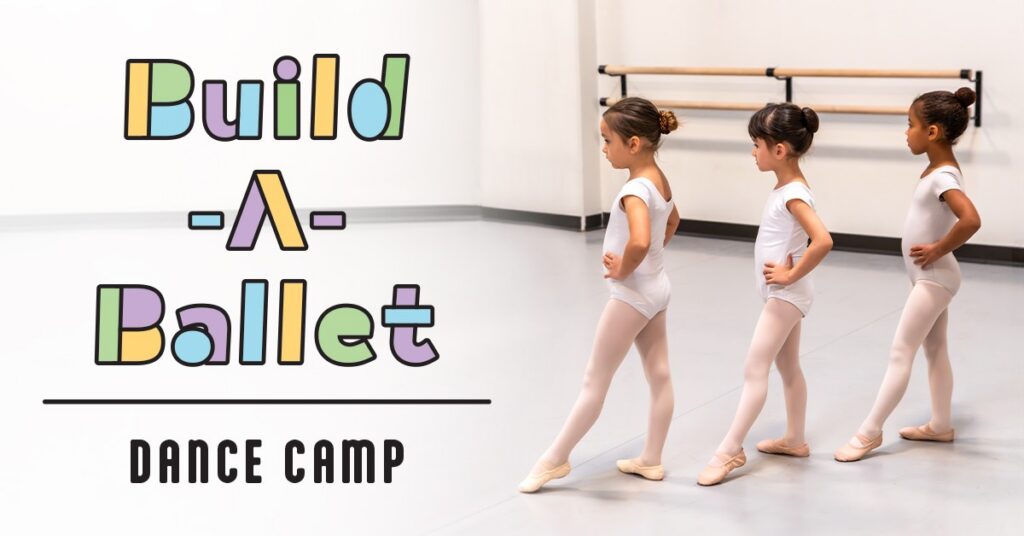 Build-A-Ballet Dance Camp invites young dancers to step into the magical world of ballet through movement, creativity and imagination. Designed especially for ages 4 – 7, this week-long camp offers a joyful introduction to ballet in a supportive and playful environment.